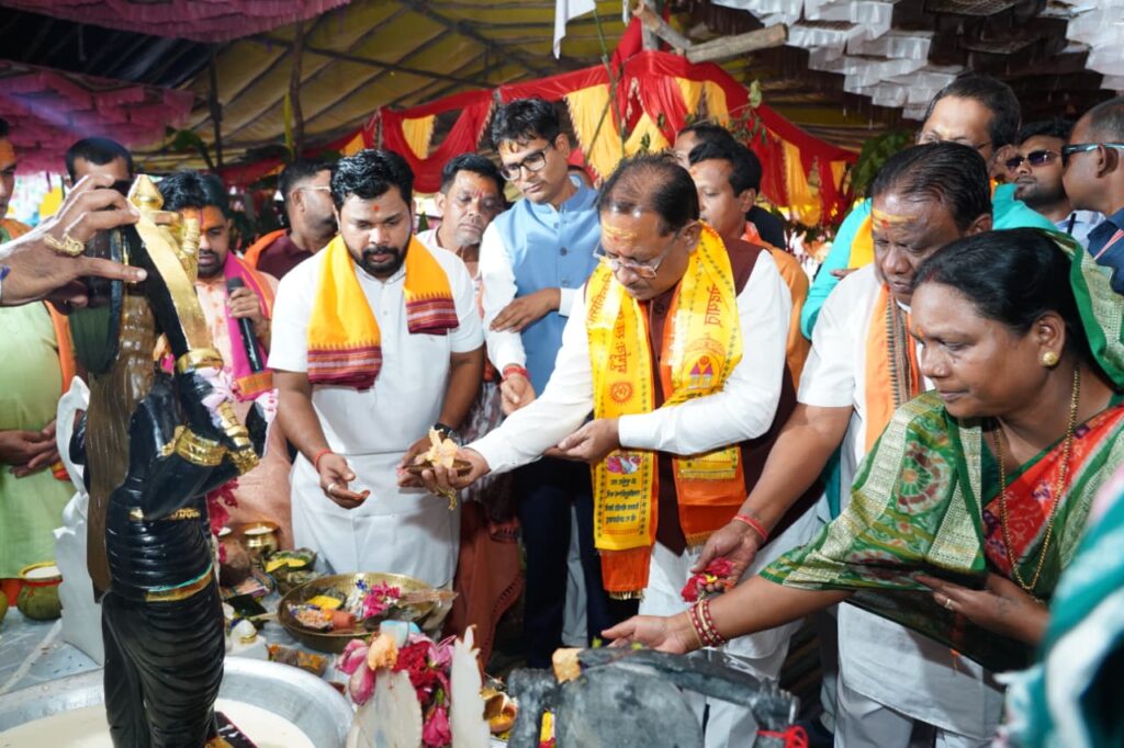 रायगढ़, श्री विष्णुदेव साय लैलूंगा विकासखंड के झगरपुर में आयोजित श्री श्री रणेश्वर रामचण्डी मंदिर की प्राण-प्रतिष्ठा कार्यक्रम के वेदी पूजन कार्यक्रम में सम्मिलित हुए। यहां उन्होंने माता रणेश्वर रामचण्डी का दुग्धाभिषेक कर प्रदेशवासियों के सुख-शांति, समृद्धि और खुशहाली की कामना की।इस अवसर पर वित्त मंत्री श्री ओ.पी.चौधरी, लोकसभा सांसद श्री राधेश्याम राठिया, पूर्व मंत्री श्री सत्यानंद राठिया, जिला पंचायत उपाध्यक्ष श्री दीपक सिदार, श्री अरुणधर दीवान, श्री गुरुपाल भल्ला, श्री श्रीकांत सोमावार, श्रीमती सुनीति राठिया, श्री रत्थू गुप्ता, श्री भुनेश्वर सदावर्ती, श्री रसिकलाल सा भी उपस्थित रहे। उल्लेखनीय है कि झगरपुर में 8 अक्टूबर से कोलता समाज की कुलदेवी श्री श्री रणेश्वर रामचण्डी माता के नव निर्मित मंदिर में प्राण प्रतिष्ठा का पांच दिवसीय कार्यक्रम चल रहा है।श्री राम ने माता से रणभूमि में मांगा था लंका विजय का आशीर्वादकोलता समाज में मान्यता है कि लंका विजय अभियान में युद्ध से पहले प्रभु श्री राम ने रणभूमि में 9 दिनों तक चण्डी माता की कठोर साधना कर युद्ध में विजयी होने का आशीष मांगते हैं। उनकी इस उपासना से माता प्रसन्न होती हैं और श्री राम को विजयी होने का आशीर्वाद प्रदान करती हैं। इस घटना के बाद से ही माता ’रणेश्वर रामचण्डी’ के नाम से ख्यात हुईं। कोलता समाज में माता कुलदेवी के रूप में पूजित हैं।