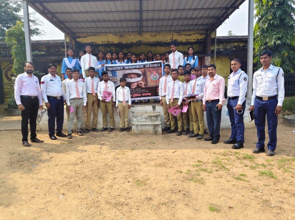 रायगढ़ पुलिस अधीक्षक श्री दिव्यांग पटेल के दिशा निर्देशन एवं डीएसपी ट्रैफिक श्री उत्तम प्रताप सिंह के मार्गदर्शन पर आज यातायात पुलिस रायगढ़ द्वारा शासकीय उच्चतर माध्यमिक विद्यालय कांटाहरदी में यातायात जागरूकता कार्यक्रम आयोजित किया गया। कार्यक्रम में प्रधान आरक्षक मुकेश चौहान द्वारा छात्र-छात्राओं एवं अध्यापकों को सुरक्षित यातायात नियमों की जानकारी विस्तारपूर्वक दी गई। उन्होंने कहा कि प्रत्येक नागरिक को सड़क पर चलते समय न केवल अपनी बल्कि दूसरों की सुरक्षा का भी ध्यान रखना चाहिए।छात्रों को समझाइश दी गई कि वाहन चलाने से पूर्व वैध ड्राइविंग लाइसेंस प्राप्त करें,वाहन चलाते समय हेलमेट व सीट बेल्ट का उपयोग अनिवार्य रूप से करें, वाहन चलाते समय मोबाइल फोन का प्रयोग न करें, सड़क पार करते समय दाएं-बाएं देखकर ही पार करें, तेज गति से वाहन न चलाएं,तीन सवारी चलाने से बचें, तथा शराब पीकर वाहन चलाने वाले चालक के वाहन में कभी सवार न हों। प्रधान आरक्षक मुकेश चौहान ने बच्चों को कहा कि गांव में माल वाहक वाहनों में बैठकर शादी, छट्टी,मेला कार्यक्रम में आते जाते हैं जो खतरनाक है जिसमें दुर्घटना होने की संभावना अधिक होती है। उन्होंने ऐसे यात्रा से बचने कहा। बच्चों से यह भी कहा गया कि वे इन नियमों की जानकारी अपने पालकों को भी दें ताकि सड़क दुर्घटनाओं में कमी लाई जा सके।साथ ही यातायात पुलिस दल द्वारा ग्राम कांटाहरदी में भ्रमण कर ग्राम पंचायत भवन एवं सार्वजनिक स्थलों पर पुलिस मुख्यालय लीड एजेंसी द्वारा सड़क सुरक्षा संबंधी प्रदाय किए गए बैनर और पोस्टर चस्पा किए गए। ग्रामीणों से चर्चा कर उन्हें यातायात नियमों के पालन एवं सड़क सुरक्षा के महत्व से अवगत कराया गया। यह जनजागरूकता अभियान आगे भी निरंतर जारी रहेगा।