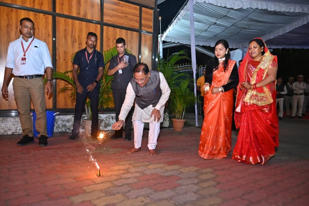 जशपुर मुख्यमंत्री श्री विष्णुदेव देव साय ने अपने परिवार के साथ मुख्यमंत्री कैम्प कार्यालय बगिया में उत्साह और उमंग के साथ दीपावली का त्योहार मनाया इस अवसर पर उनकी धर्मपत्नी श्रीमती कौशल्या और परिवार के सदस्य भी शामिल हुए।मुख्यमंत्री ने प्रदेशवासियो को दीपावली की शुभकामनाएं देते हुए कहा कि दीपावली खुशियों का त्योहार है और परिवार के साथ मिलकर समय बिताने का अवसर मिलता है।दीपावली हम सभी को अंधकार से उजाले की प्रेरणा देती है। मुख्यमंत्री ने अपने धर्मपत्नी श्रीमती कौशल्या साय और परिवार के अन्य सदस्य के साथ इस पर्व को खास बनाने के लिए खुशी जताई। दीपावली का पर्व सिर्फ घरों में दीप जलाने का नहीं,बल्कि अपने विचारों और जीवन में भी सकारात्मकता लाने का पर्व है।