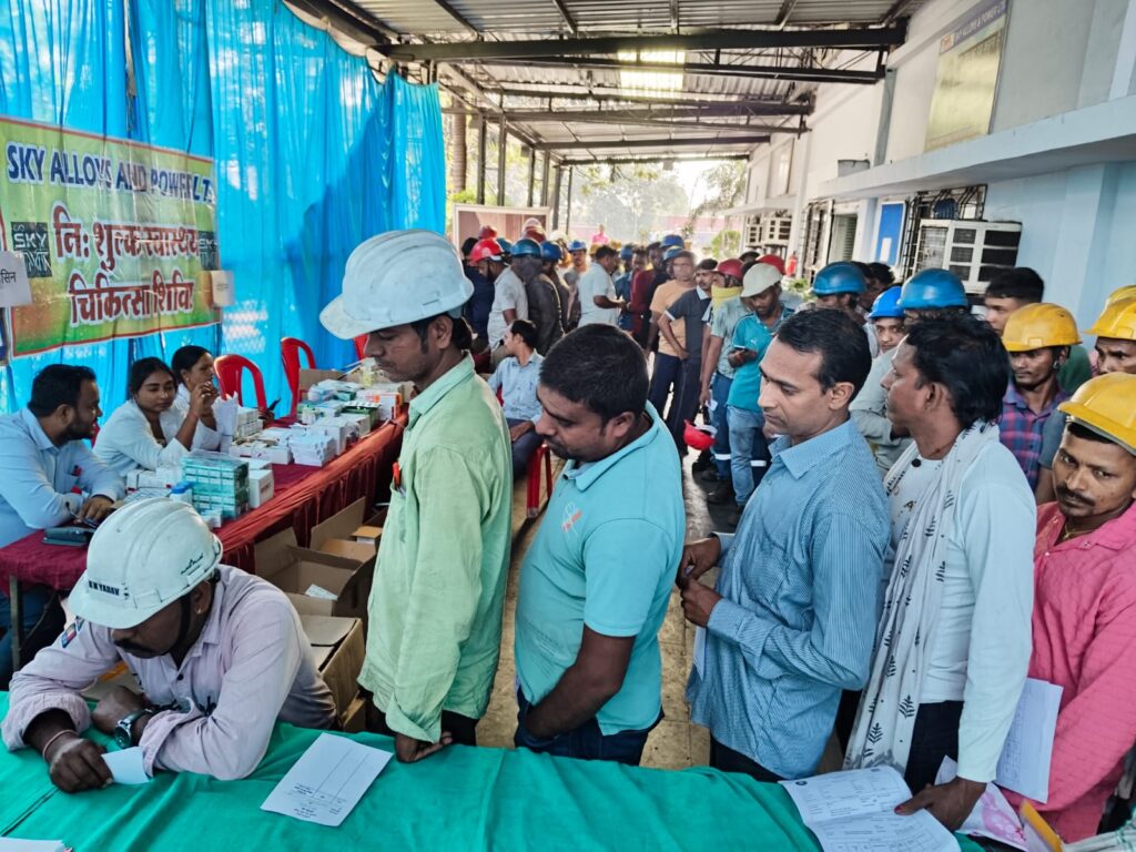 रायगढ़ स्काई एलॉयज एंड पॉवर लिमिटेड में 08 नवंबर 2025 को ई.एस.आई.सी मेडिकल कैंप का आयोजन किया गया, जिसमें खरसिया डिस्पेंसरी से डॉ. विनोद दर्शन और उनकी टीम ने अपनी सेवाएं प्रदान कीं। इस कैंप में प्लांट ओएचसी टीम ने भी सहयोग किया।इस अवसर पर प्लांट हेड श्री अर्जुन मलाकर और एचआर हेड श्री राजेंद्र गुप्ता उपस्थित थे। इस मेडिकल कैंप में 260 से अधिक ई.एस.आई.सी कर्मचारी की स्वास्थ्य जांच की गई और उन्हें आवश्यक चिकित्सा सलाह दी गई। इस कैंप का उद्देश्य कर्मचारियों के स्वास्थ्य को बेहतर बनाना और उन्हें स्वस्थ जीवनशैली अपनाने के लिए प्रेरित करना था। मेडिकल कैंप के मुख्य आकर्षण सामान्य स्वास्थ्य जांच रक्तचाप और शुगर की जांच, आंखों की जांच, परामर्श स्वास्थ्य जागरूकता सत्र के दौरान फ्री दवाइयां वितरण की गयीस्काई एलॉयज एंड पॉवर लिमिटेड अपने कर्मचारियों के स्वास्थ्य और कल्याण के लिए हमेशा प्रतिबद्ध है और इस तरह के आयोजन के माध्यम से उनकी स्वास्थ्य जरूरतों को पूरा करने का प्रयास करता है।