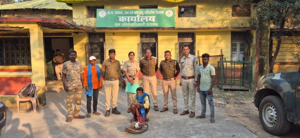 रायगढ़ वनमण्डल में चलाए जा रहे एंटी स्नेयर वॉक अभियान के दौरान वन विभाग की टीम ने वन परिक्षेत्र रायगढ़ के अंतर्गत बंगुरसिया-पश्चिम कक्ष क्रमांक 946, नारंगी क्षेत्र में वन्य प्राणी शिकार के लिए 11 के.वी.विद्युत तार से सेटरिंग तैयार कर फंदा बिछाते हुए एक व्यक्ति को रंगे हाथ पकड़ा गयावनमण्डलाधिकारी रायगढ़ ने जानकारी देते हुए बताया कि आरोपी जय सिंह, पिता कार्तिकराम राठिया, उम्र 39 वर्ष, निवासी छिरवानी, बिजली के केबल का इस्तेमाल कर वन्य प्राणियों के शिकार की कोशिश कर रहा था। मौके से उसके पास से सेटरिंग तार और विद्युत तार बरामद किए गए। वन विभाग की टीम ने तुरंत कार्रवाई करते हुए आरोपी के विरुद्ध भारतीय वन्य प्राणी संरक्षण अधिनियम, 1972 की धारा 9 के तहत अपराध पंजीबद्ध किया। आरोपी को न्यायालय रायगढ़ के समक्ष प्रस्तुत किया गया,जहां से उसे न्यायिक अभिरक्षा में जेल भेज दिया गया। इस कार्यवाही में मुख्य रूप में उप वनमण्डलाधिकारी रायगढ़ श्री एम.एम. मिश्रा,वन परिक्षेत्र अधिकारी रायगढ़ श्री संजय लकड़ा, प्रशिक्षु वन क्षेत्रापाल परिक्षेत्र सहायक बंगुरसियां (पश्चिम) ज्योति धु्रव, उप वनक्षेत्रपाल श्री हेमलाल जायसवाल,वनपाल प.स.जामगांव श्री मधुसुदन बरिहा,वनरक्षक श्री सुखलाल खड़िया,श्री पालू राम साहू वनरक्षक,श्री आशीष बानी वनरक्षक, दुरवाशा धनवार सुरक्षा श्रमिक,सबिन उरांव सुरक्षा श्रमिक, सिमोन केरकेट्टा सुरक्षा श्रमिक एवं श्री तुलसी बसोड़ का योगदान रहा।