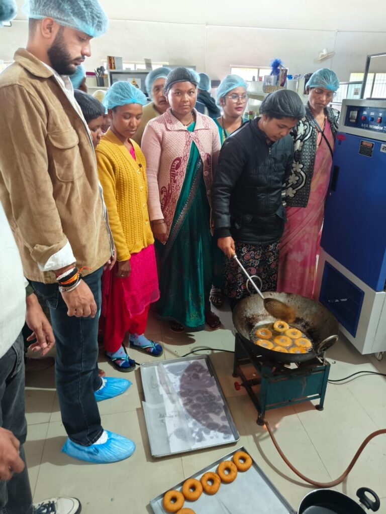जशपुर जिले में फूड प्रोसेसिंग और वैल्यू एडिशन को स्व सहायता समूह मेंबर्स,किसानों,एकेडेमिया और सरकारी एजेंसियों के संयुक्त प्रयासों से नई रफ़्तार मिली है। ज़मीनी स्तर पर चल रही इन कोशिशों ने यह स्पष्ट कर दिया है कि यदि सही ट्रेनिंग, टेक्नोलॉजी और मार्केट लिंकज उपलब्ध हो,तो स्थानीय स्तर पर बने उत्पाद भी बड़े बाज़ारों तक पहुँच सकते हैं। सभी स्टेकहोल्डर्स ने इन प्रयासों को और आगे बढ़ाने की आवश्यकता पर बल दिया, ताकि जशपुर के उत्पाद व्यापक उपभोक्ता आधार तक पहुँच सकें।खेती और बागवानी की वैल्यू चेन को मज़बूत करने और ग्रामीण आय बढ़ाने की दिशा में एक अहम कदम के रूप में निफ्टम कुंडली (हरियाणा) का ग्राम अंगीकारम कार्यक्रम 19 से 27 नवंबर 2025 तक जशपुर जिले के नौ दिवसीय दौरे पर है। इस दौरान निफ्टम टीम ने जिले के कलेक्टर श्री रोहित व्यास और जिला पंचायत के सीईओ श्री अभिषेक कुमार से मुलाकात कर योजना की गई गतिविधियों की रूपरेखा साझा की।यह प्रशिक्षण कार्यक्रम महुआ सेंटर ऑफ एक्सीलेंस में आयोजित किया जा रहा है,जिसे जिला प्रशासन जशपुर का समर्थन प्राप्त है और जिसका संचालन जय जंगल फार्मर्स प्रोड्यूसर कंपनी लिमिटेड द्वारा किया जा रहा है। यह केंद्र पहले से ही महुआ,मिलेट्स और वनोपज आधारित नवाचारों का एक मजबूत हब बनकर उभर रहा है।कार्यक्रम के अंतर्गत स्व सहायता समूह,एसपीओएस और पोस्टग्रेजुएट विद्यार्थियों के लिए मोटे अनाज और स्थानीय कच्चे माल पर आधारित वैल्यू-एडेड उत्पादों पर हैंड्स-ऑन ट्रेनिंग सेशन शुरू किए गए हैं। कार्यक्रम के तीसरे दिन, कांसाबेल,कुनकुरी और पत्थलगांव क्षेत्रों की समूह की 20 महिलाएं और एफपीओएस के 5 पुरुषों ने सक्रिय रूप से व्यावहारिक प्रशिक्षण में हिस्सा लिया।ट्रेनिंग के दौरान प्रतिभागियों को सूजी से बना पास्ता,बाजरा कपकेक और डोनट्स बनाने का व्यावहारिक प्रशिक्षण दिया गया।