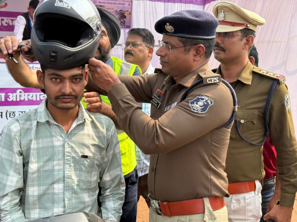 रायगढ़ सड़क सुरक्षा माह 2026 के अंतर्गत वरिष्ठ पुलिस अधीक्षक रायगढ़ श्री शशि मोहन सिंह के दिशा निर्देशन में जिले में सड़क दुर्घटनाओं में कमी लाने तथा आम नागरिकों को यातायात नियमों के प्रति जागरूक करने हेतु दिनांक 01.01.2026 से 31.01.2026 तक विशेष अभियान चलाया जा रहा है। इस दौरान रायगढ़ पुलिस विविध जागरूकता कार्यक्रमों के माध्यम से आमजन के मध्य पहुंचकर यातायात नियमों के पालन एवं उनके महत्व की जानकारी दे रही है,जिससे नागरिक सुरक्षित रह सकें और भावी दुर्घटनाओं से बचाव हो सके।इसी क्रम में आज राष्ट्रीय राजमार्ग 153 अंतर्गत ग्राम तेतला में यातायात पुलिस रायगढ़ द्वारा बिना हेलमेट दुपहिया वाहन चलाने वालों पर मोटर व्हीकल एक्ट के तहत चालानी कार्यवाही की गई तथा उन्हें हेलमेट की उपयोगिता बताते हुए नि:शुल्क हेलमेट प्रदान किए गए। जिला पुलिस द्वारा सड़क सुरक्षा जागरूकता के तहत लगातार ऐसे कार्यक्रम आयोजित कर बिना हेलमेट वाहन चालकों को हेलमेट वितरित किए जा रहे हैं।आज नेशनल हाईवे 153 पर हेलमेट के महत्व पर आधारित विशेष जागरूकता कार्यक्रम का आयोजन किया गया, जिसमें चालानी कार्यवाही उपरांत वाहन चालकों को नि:शुल्क हेलमेट वितरित किए गए। इस अवसर पर एडिशनल एसपी श्री अनिल सोनी एवं ट्रैफिक डीएसपी श्री उत्तम प्रताप सिंह ने स्वयं वाहन चालकों को हेलमेट प्रदान कर उसके नियमित उपयोग का महत्व समझाया।वरिष्ठ पुलिस अधीक्षक श्री शशि मोहन सिंह ने आम जनता से अपील करते हुए कहा कि जिंदगी अमूल्य है, इसे थोड़ी सी लापरवाही से जाया न करें। स्वयं की सुरक्षा के लिए यातायात नियमों का पालन करें तथा जब भी दुपहिया वाहन चलाएं, हेलमेट अवश्य धारण करें।इस दौरान एडिशनल एसपी श्री अनिल सोनी एवं ट्रैफिक डीएसपी श्री उत्तम प्रताप सिंह के साथ थाना प्रभारी पुसौर निरीक्षक रामकिंकर यादव सहित थाना यातायात एवं थाना पुसौर का स्टाफ भी उपस्थित रहा। कार्यक्रम को सफल बनाने में अडानी ग्रुप का विशेष सहयोग रहा।यातायात जागरूकता के क्रम में कल महिला समूह के साथ महिला पुलिसकर्मियों का हेलमेट जागरूकता रैली का आयोजन किया जाएगा।