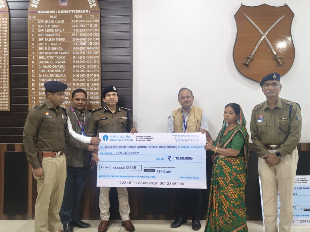 रायगढ़ ड्यूटी के दौरान आकस्मिक निधन होने पर जिले में पदस्थ स्वर्गीय प्रधान आरक्षक दिलीप ठाकुर की पत्नी श्रीमती सरस्वती सिंह ठाकुर एवं जीआरपी थाने में पदस्थ स्वर्गीय राम सिंह लकड़ा की पत्नी श्रीमती किरण लकड़ा को पुलिस सैलरी पैकेज के अंतर्गत 10–10 लाख रुपये की बीमा राशि का चेक प्रदान किया गया। यह सहायता राशि वरिष्ठ पुलिस अधीक्षक शशि मोहन सिंह एवं एसबीआई शाखा पुसौर के प्रबंधक द्वारा सौंपते हुए शोकसंतप्त परिवारों के प्रति गहरी संवेदना व्यक्त की गई।इस अवसर पर अतिरिक्त पुलिस अधीक्षक अनिल कुमार सोनी ने दोनों परिवारों को ढांढस बंधाते हुए कहा कि प्राप्त धनराशि का सदुपयोग करें और किसी भी प्रकार के प्रलोभन से बचें। उन्होंने विशेष रूप से आगाह किया कि बड़ी राशि मिलने पर कई बार लोग रुपए दोगुना करने का लालच देकर फर्जी निवेश योजनाओं में फंसा देते हैं, जिससे परिवार आर्थिक धोखाधड़ी का शिकार हो जाते हैं। बैंक प्रबंधन ने भी बताया कि ऐसे समय में फेक कॉल और झूठे निवेश प्रस्ताव आम हो जाते हैं,अतःसतर्कता बेहद जरूरी है। वरिष्ठ पुलिस अधीक्षक शशि मोहन सिंह ने शोकाकुल परिजनों से संवाद करते हुए कहा कि “पुलिस विभाग केवल सेवा संस्था नहीं, बल्कि एक परिवार है और इस कठिन घड़ी में पुलिस परिवार हर स्तर पर उनके साथ खड़ा है। उन्होंने आश्वासन दिया कि भविष्य में भी किसी प्रकार की सहायता की आवश्यकता होने पर विभाग द्वारा पूरा सहयोग दिया जाएगा एसएसपी श्री शशि मोहन सिंह ने बताया कि जिले के सभी पुलिसकर्मियों का पुलिस सैलरी पैकेज कराया गया है, जिसके अंतर्गत आकस्मिक दुर्घटना या निधन की स्थिति में एक करोड़ रुपये तक की बीमा राशि का प्रावधान है। उन्होंने कहा कि “पुलिस की ड्यूटी अत्यंत जोखिमपूर्ण होती है, ऐसे में यह बीमा सुरक्षा परिवार के लिए एक मजबूत सहारा बनती है, ताकि विपरीत परिस्थितियों में भी वे आत्मबल के साथ आगे बढ़ सकें और अपने जीवन को नई दिशा दे सकें। डीएसपी श्री सुशांतो बनर्जी ने वरिष्ठ पुलिस अधीक्षक के सतत प्रयासों तथा एसबीआई प्रबंधन द्वारा समय पर दायित्वों के निर्वहन के लिए बैंक प्रशासन के प्रति आभार व्यक्त किया।