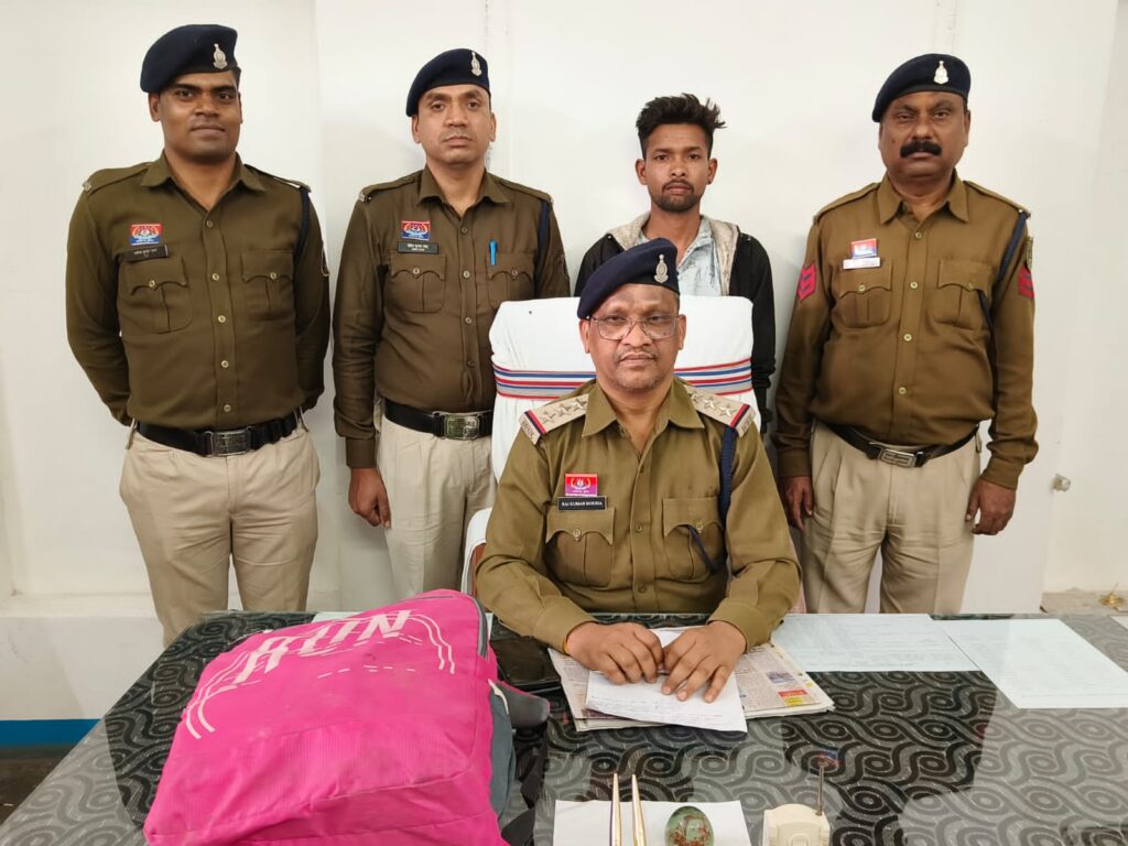 रायगढ़ पुलिस अधीक्षक रेल रायपुर श्री दिव्यांग पटेल के निर्देशन एवं उप पुलिस अधीक्षक श्री तोबियस खाखा के मार्गदर्शन में जीआरपी थाना रायगढ़ द्वारा अवैध मादक पदार्थ के तस्करी के विरुद्ध लगातार अभियान चलाया जा रहा है इसी दौरान दिनांक 15.02.26 क़ो मुखबीर सूचना के आधार पर ट्रेन नंबर 18477 उत्कल एक्सप्रेस के पिछे जनरल बोगी मे एक व्यक्ति भारत ठाकुर पिता इन्दर सिंह उम्र 23 वर्ष पता ग्राम बर्बात्ता थाना कटंगी जिला जबलपुर मध्यप्रदेश का गुलाबी रंग के बेग के अंदर 2 पैकेट मे 3 किलो मादक पदार्थ गांजा कीमती 1,50,000 का रखा था जिसे मौके पर कार्यवाही कर अपराध क्रमांक 04 /26 धारा 20 (b) एनडीपीएस एक्ट कायम कर विवेचना में लिया गया आरोपी को गिरफ्तार कर जुडिशियल रिमांड लेकर आरोपी को जिला जेल रायगढ़ दाखिल किया गया. उपरोक्त कार्यवाही मे थाना प्रभारी निरीक्षक आर.के.बोरझा,प्रधान आरक्षक सितेंद्र सिंह,अरविल तिर्की,आरक्षक अवधेश मिश्रा, लकेश्वर मिरि, गिरधर लहरे,राकेश ठाकुर,रोहित साहू, सरोज साव का योगदान रहा