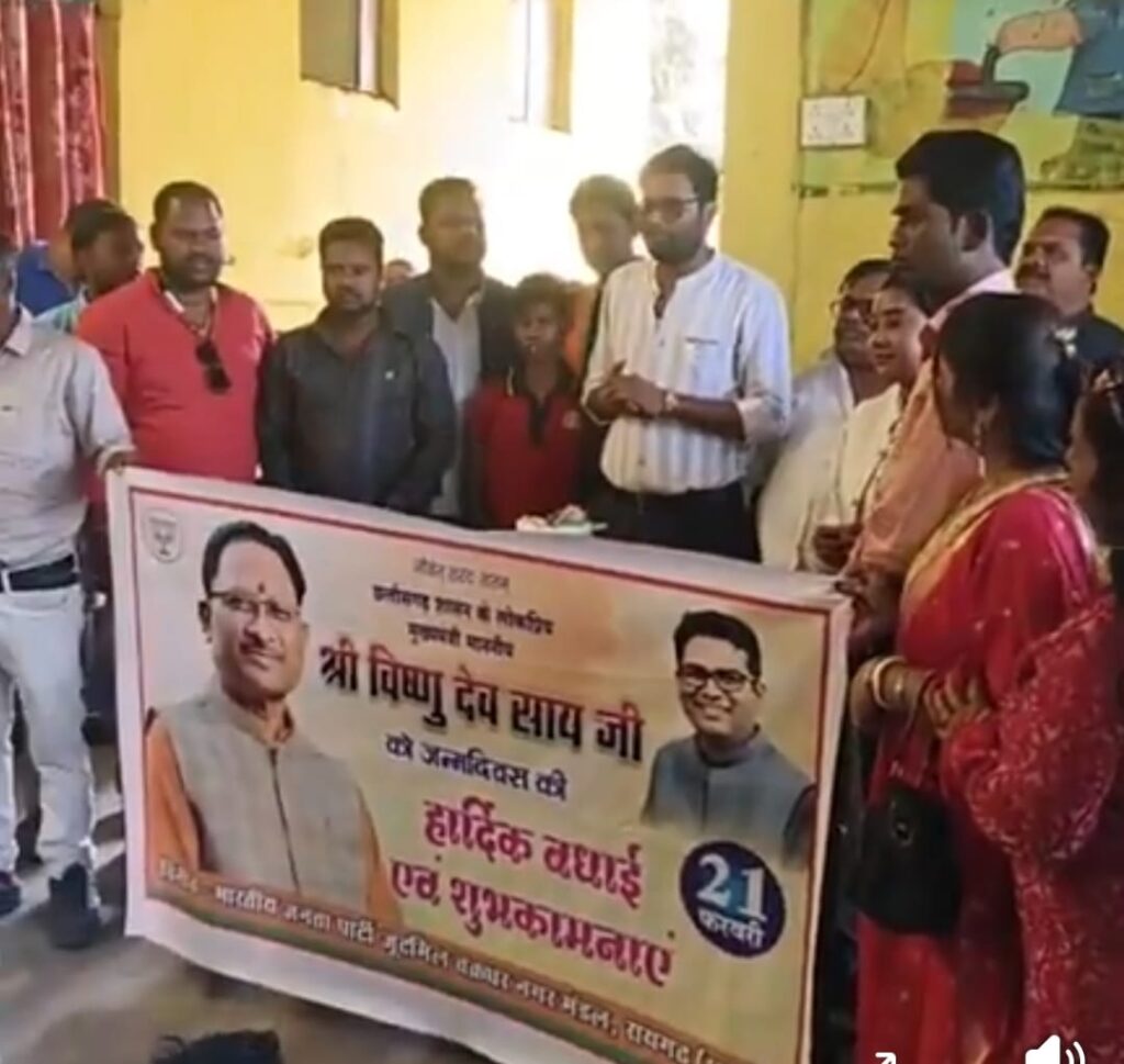 रायगढ़-छत्तीसगढ़ के यशस्वी मुख्यमंत्री माननीय विष्णु देव साय जी के जन्मदिन के उपलक्ष में आज युवा मोर्चा रायगढ़ के द्वारा पहाड़ मंदिर के पास स्थित मूक बघीर विद्यालय के बच्चों के साथ केक काटकर एवं फल,बिस्किट वितरण कर आदरणीय मुख्यमंत्री जी का जन्मदिन मनाया गया प्रशांत सिंह ने बताया की विष्णुदेव साय जन्म 21 फरवरी 1964 में हुआ वे छत्तीसगढ़ के चौथे और पहले आदिवासी मुख्यमंत्री हैं। जशपुर जिले के बागिया गाँव के एक किसान परिवार में जन्मे, साय ने अपने राजनीतिक जीवन की शुरुआत 1989 में पंच के रूप में की थी। वे भाजपा के वरिष्ठ आदिवासी नेता हैं और 4 बार सांसद तथा केंद्रीय मंत्री भी रहे हैं और दो बार भाजपा के प्रदेश अध्यक्ष भी रहे है जो अपनी सौम्य छवि के लिए प्रसिद्ध हैं आज के कार्यक्रम में मंडल भाजपा अध्यक्ष शैलेश माली,श्री रतिंदर राय जी, पार्षदगण राजेंद्र ठाकुर,संदीप क्षत्रिय,नरेश पटेल,त्रिनिशा चौहान महामंत्री सूरज मिरी,युवा मोर्चा से रामजाने भारद्वाज,सुजीत लहरें के साथ मोर्चा के पदाधिकारी एवं कार्यकर्ता गण उपस्थित रहे !सभी कार्यकर्ताओं ने उत्साह के साथ मुख्यमंत्री जी दीर्घायु की कामना की है।