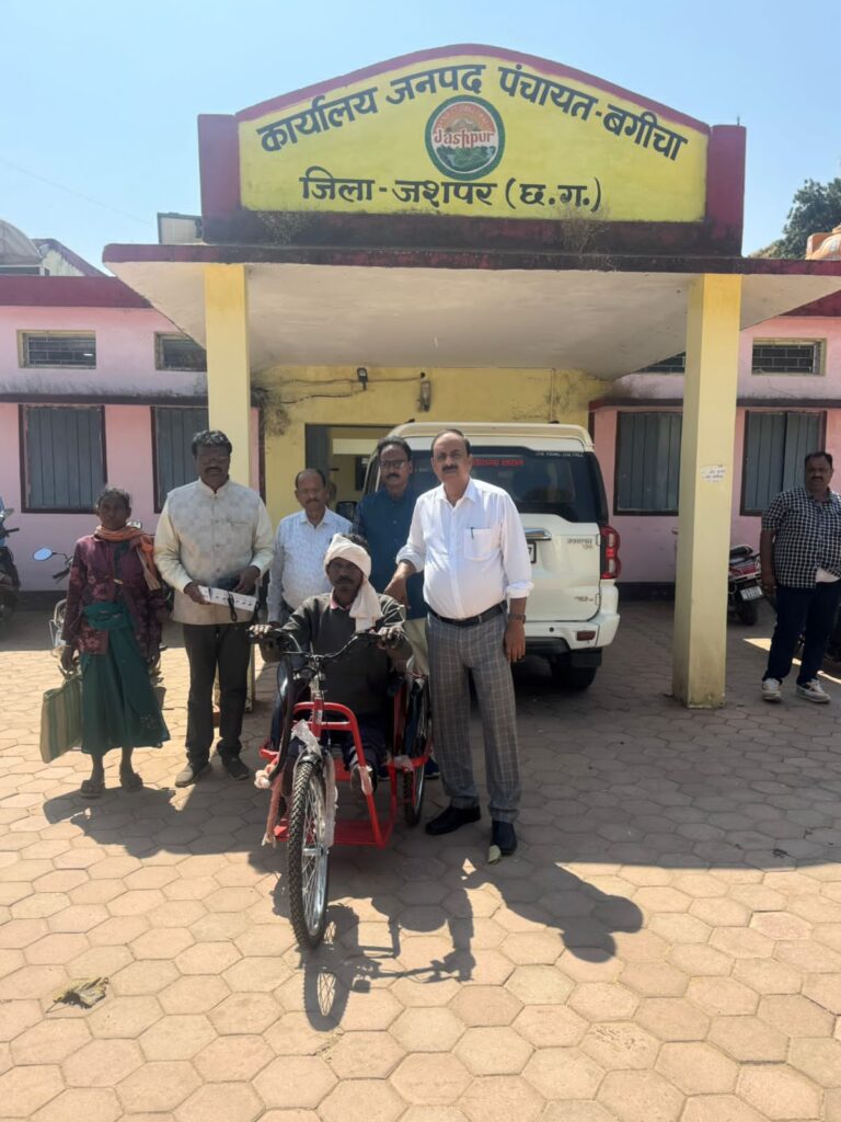 जशपुर सरकार की जनकल्याणकारी योजनाएं समाज के प्रत्येक वर्ग तक पहुंचकर उनके जीवन को सहज और सम्मानजनक बना बना रही है। विशेष रूप से दिव्यांगजनों के लिए संचालित योजनाएं न केवल उन्हें आत्मनिर्भर बनने में सहायता प्रदान कर रही हैं,बल्कि उनके जीवन में नई आशा और आत्मविश्वास का संचार भी कर रही हैं। इसी कड़ी में बगीचा विकासखंड के ग्राम खेड़ार निवासी श्री शनिचर टोप्पो को शासन की योजना के अंतर्गत कलेक्टर श्री रोहित व्यास के निर्देश पर आज जनपद सीईओ श्री विनोद सिंह द्वारा मोटराइज्ड ट्राई साइकिल प्रदान की गई। नागपुर में एक दुःखद रेल दुर्घटना में उनके दोनों पैर ट्रेन से कट गए थे। इस गंभीर हादसे के बाद उनका जीवन अत्यंत कठिन परिस्थितियों में गुजर रहा था। दैनिक आवागमन, रोजगार और सामान्य कार्य भी उनके लिए चुनौतीपूर्ण बन गए थे शासन द्वारा प्रदत्त मोटराइज्ड ट्राई साइकिल उनके लिए किसी वरदान से कम नहीं है। अब वे स्वयं आसानी से एक स्थान से दूसरे स्थान तक जा सकते हैं। इससे उनकी दूसरों पर निर्भरता कम हुई है और आत्मसम्मान के साथ जीवन यापन करने की राह प्रशस्त हुई है। मोटराइज्ड ट्राई साइकिल मिलने के बाद श्री टोप्पो ने शासन-प्रशासन के प्रति आभार व्यक्त करते हुए कहा कि इस सहायता से उनका जीवन काफी हद तक आसान हो गया है। अब वे अपने दैनिक कार्य स्वयं कर पा रहे हैं और सामाजिक गतिविधियों में भी सक्रिय रूप से भाग ले रहे हैं। शासन की ऐसी योजनाएं यह दर्शाती हैं कि प्रशासन समाज के कमजोर वर्गों के साथ खड़ा है और उनके जीवन में सकारात्मक परिवर्तन लाने के लिए प्रतिबद्ध है।