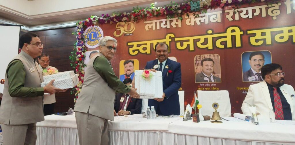 रायगढ़ सामाजिक सेवा के 50 गौरवशाली वर्षों को समर्पित लॉयन्स क्लब रायगढ़ सिटी का स्वर्ण जयंती समारोह 22 अप्रैल को होटल ट्रिनिटी ग्रैंड में भव्य एवं अविस्मरणीय अंदाज में आयोजित किया गया। इस विशेष अवसर पर क्लब के वर्तमान एवं पूर्व सदस्यों ने उत्साहपूर्वक भाग लिया और अपनी उपलब्धियों पर गर्व व्यक्त करते हुए समाजसेवा से जुड़े महत्वपूर्ण संस्मरण साझा किए।कार्यक्रम का शुभारम्भ अतिथियों द्वारा दीप प्रज्वलन कर किया गया.इस अवसर पर मुख्य अतिथि डिस्ट्रिक्ट गवर्नर लॉय.विजय अग्रवाल ने अपने उदबोधन मे लॉयन्स क्लब रायगढ़ सिटी के स्वर्ण जयंती आयोजन के बहुत ही जोशीले ढंग से मनाने और क्लब के प्रतिष्ठित अध्यक्ष लॉय.रामनिवास मोड़ा के गंभीर व्यक्तित्व और समाजसेवा के क्षेत्र मे बहुत कुछ कर गुजरने वाली सोच की मंच से जमकर तारीफ की.उन्होंने मौजूदा युवा सचिव लॉय.अरुण गोयल एवं क्लब के दोनों चार्टेड मेंबर लॉ.सागर अग्रवाल और लॉ.डॉ. के एन पटेल का धन्यवाद ज्ञापित करतेहुएमंचसेसम्मानितकिया.लॉय.विजय अग्रवाल ने कार्यक्रम मे उपस्थित रेडक्रास के संरक्षक व पूर्व चेयरमैन संतोष अग्रवाल को लॉयन्स क्लब के लिए नींव का पत्थर बताते हुए आज पर्यन्त मिल रहे उनके सहयोगी भूमिका की मंच से तारीफ़ की.समारोह के दौरान मुख्य अतिथि द्वारा लायंस क्लब के वरिष्ठ सदस्यों एवं पदाधिकारियों को उनके उत्कृष्ट योगदान के लिए स्मृति चिन्ह प्रदान कर सम्मानित किया गया। यह सम्मान उनके वर्षों के समर्पण और सेवा भावना का प्रतीक रहा। कार्यक्रम को मुख्य वक्ता लॉय.प्रीति पाल बाली,गेस्टऑफ़ ऑनर्स लॉ.रिपुदमन पुरारी,लॉ.पवन मलिक और विशिष्ट अतिथि अम्बेसडर ऑफ़ गुडबिल लॉय.शैलेष अग्रवाल ने भी सम्बोधित किया.कार्यक्रम में सांस्कृतिक रंग भी खूब देखने को मिला। गीत-संगीत,रोचक प्रतियोगिताओं और विविध आकर्षक स्पर्धाओं ने माहौल को जीवंत बना दिया।उपस्थित सदस्यों और अतिथियों ने पूरे उत्साह के साथ इन गतिविधियों में भाग लिया,जिससे आयोजन एक यादगार उत्सव में बदल गया।क्लब की कार्यप्रणाली से प्रभावित स्वर्ण जयंती के अवसर पर इस गौरवशाली विरासत को आगे बढ़ाने का संकल्प लेते हुए दर्जनों नए युवाओं ने क्लब की सदस्य्ता ग्रहण की.वहीं अतिथियों को क्लब की ओर से स्मृति चिन्ह भेंट कर कार्यक्रम की सफलता के लिए क्लब के अध्यक्ष रामनिवास मोड़ा ने सभी अतिथियों,पदाधिकारियों और सदस्यों के प्रति आभार प्रकट किया.अंत में सहभोज के साथ कार्यक्रम का समापन हुआ,जहां सभी ने एक-दूसरे के साथ बिताए पलों को संजोया और स्वर्णिम यात्रा को याद करते हुए भविष्य में भी सेवा कार्यों को नई ऊंचाइयों तक ले जाने का संकल्प लिया।