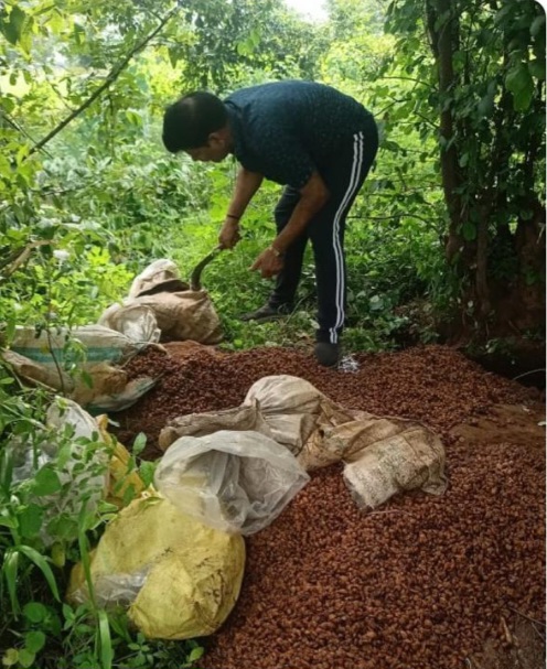 रायगढ़,3 सितम्बर 2024/ ग्राम लम्हीदरहा थाना चक्रधर नगर में अवैध शराब निर्माण की सूचना मिलने पर आबकारी अमले जंगल में नाले किनारे पहुँचा। आबकारी दल को उक्तत स्थल पर सात प्लास्टिक जारीकेन में भरी 35 लीटर, एक पीले रंग के डालडा डिब्बे में 15 लीटर, एक हरे रंग की पेप्सी बॉटल में 2 लीटर, एक काले रंग की ट्यूबनुमा ब्लेडर में 30 लीटर और एक अन्य काले रंग की ट्यूबनुमा ब्लेडर में 20 लीटर महुआ शराब समेत कुल 102 लीटर अवैध आसवित मदिरा बाजार मूल्य 20400, 35 प्लास्टिक बोरियों में भरा कुल 700 किलोग्राम महुआ लाहान बाजार मूल्य 35000 एवं मदिरा बनाने के बर्तन बरामद हुए। मौके पर अज्ञात आरोपियों के विरुद्ध आबकारी अधिनियम के तहत गैर जमानतीय धाराओं में प्रकरण कायम किया गया। उक्त कार्यवाही में आबकारी उपनिरीक्षक जितेश नायक,आबकारी आरक्षक तुलेश्वर राठौर, लोकेश नेताम, राजेश्वर सिंह ठाकुर, कुलदीप ठाकुर, भेखराम पटेल और वाहन चालक वेदराम साहू का महत्वपूर्ण योगदान रहा।