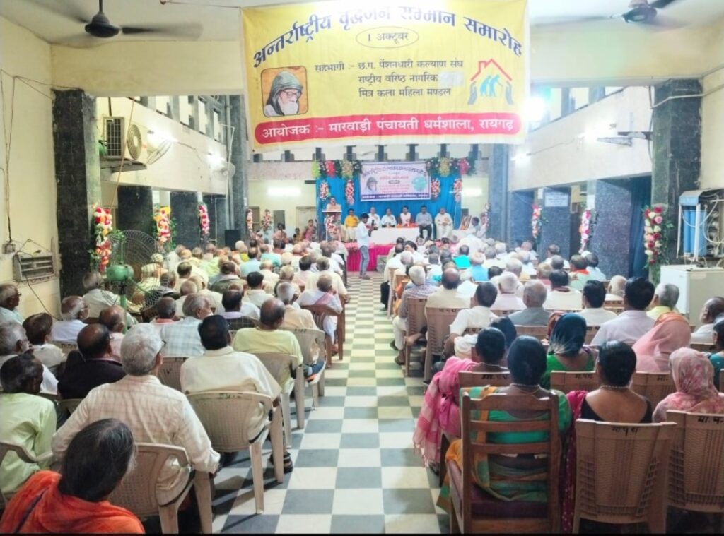 विगत 16 वर्षों से वृद्धजन सम्मान समारोह के आयोजन के सूत्रधार तथा पंचायती धर्मशाला के पदाधिकारी अध्यक्ष संतोष अग्रवाल सत्तू सेठ एवं सचिव गोपाल अग्रवाल के समाजसेवा की मुक्त कंठ से सराहना की गई। इनका उद्देश्य जागरूकता बढ़ाना और जनता,नागरिक समाज एवं अन्य निकायों की सक्रिय भागीदारी को प्रोत्साहित करना है।इनका उद्देश्य अंतर-पीढ़ीगत बंधन के महत्व पर जोर देने के साथ-साथ सभी धर्मों के वरिष्ठ नागरिकों के अमूल्य योगदान को पहचानना और उनके कल्याण के संदर्भ में जागरूकता बढ़ाना भी है।अंतरराष्ट्रीय वृद्धजन दिवस 2024 का सफल आयोजन इस प्रतिबद्धता का प्रमाण है कि वरिष्ठ नागरिकों को वह देखभाल,सम्मान और अवसर मिले, जिसके वे हकदार हैं।संस्था बुजुर्गों के लिए एक समावेशी समाज बनाने के लिए समर्पित है और वरिष्ठ नागरिकों के कल्याण को बढ़ावा देने के लिए अपने प्रयास जारी रखेगा।इस अवसर पर संस्था के सचिव गोपाल अग्रवाल ने अपने उद्बोधन मे पितृ पक्ष में समाज के लिए यह आह्वान किया कि जो पूर्वज हमारे बीच नहीं हैं उन्हें पूजने से पूर्व जो हमारे श्रेष्ठ वरिष्ठ बुजुर्ग मौजूद हैं उनको पूजना,उनका सम्मान करना अधिक श्रेयस्कर होगा और जीवन मे निश्चित ही इसका लाभ किसी न किसी रूप मे मिलेगा।इस आयोजन को सफल बनाने में तीन सेवा भावी संस्थाएं मारवाड़ी पंचायती धर्मशाला,मित्रकला महिला समिति व छग पेंशनधारी कल्याण संघ ने सामूहिक भूमिका का निर्वहन किया वहीं प्रदेश के बडे़ उद्योग समूह एन आर इस्पात ग्रुप के मालिक नंदकिशोर अग्रवाल व संतोष अग्रवाल सावित्री राइस मिल का विशेष सहयोग रहा।कार्यक्रम मे पंचायती धर्मशाला के पदाधिकारियों मे राजकुमार अग्रवाल, पवन अग्रवाल,आनंद बेरीवाल,सुभाष चिराग,सुरेश गोयल,जयभगवान,नरेश अग्रवाल,मित्रकला महिला से श्रीमती सुनीता अग्रवाल,शीतल,पायल,रश्मि, रूपाली,गरिमा,रीना अग्रवाल, पेंसनधारी कल्याण से के.एल. बरेठ,श्रीमती फैड्रिक आदि की उत्कृष्ट भूमिका रही।