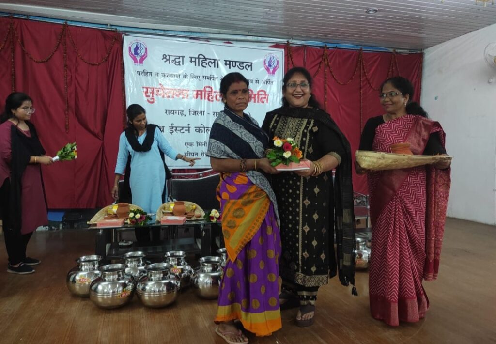 रायगढ़ सामुदायिक भवन,क्षेत्रीय मुख्यालय,एस.ई.सी.एल रायगढ़ क्षेत्र धनतेरस के शुभअवसर पर सुचेतना महिला समिति द्वारा सामुदायिक भवन,क्षेत्रीय मुख्यालय में 15 जरूरतमंद महिलाओं एवं पुरुष कामगारों को स्टील का गंज,पुजा के समान एवं मिठाई के डब्बे का वितरण किया गया। श्रद्धा महिला मंडल,एसईसीएल बिलासपुर की अध्यक्षा परम आदरणीया श्रीमती पूनम मिश्रा और उनके सहयोगियों के द्वारा किए जा रहे सामाजिक कार्यों से प्रेरित होकर समाज के प्रति अपने उतरदायित्व को निभाते हुए रायगढ़ क्षेत्र की सुचेतना महिला समिति की अध्यक्षा श्रीमती रीना पांडे एवं उनके सदस्यों द्वारा दिनांक 29/10/2024 को सामुदायिक भवन, क्षेत्रीय मुख्यालय में 15 जरूरतमंद महिलाओं एवं पुरुष कामगारों को स्टील का घडा, पुजा के समान (दिया, तेल और बाती) एवं मिठाई के डब्बे का वितरण किया गया |इस कल्याणकारी कार्य के अवसर पर मैं श्रीमती रीना पांडे,अध्यक्षा सुचेतना महिला समिति द्वारा सफाई कर्मी एवं कामगारों को क्षेत्रीय मुख्यालय,रायगढ़ की स्वच्छता और सुंदरता को बनाए रखने एवं उनके अमूल्य योगदान हेतु पुष्पगुच्छ से स्वागत किया एवं उनके समर्पण, निष्ठा और अथक प्रयासों को नमन करते हुए पूजा सामग्री एवं मिष्टान प्रदाय किया गया उक्तो कार्यक्रम में समिति की सदस्या श्रीमती गीता पाटिल,श्रीमती स्मृति श्रीवास्तव,श्रीमती नेहा चौरसिया,श्रीमती कीर्ति मिंज ने अहम भूमिका निभाई जिसके फलस्वरूप यह कार्यक्रम सफलता पूर्वक सम्पन्न हुआ।