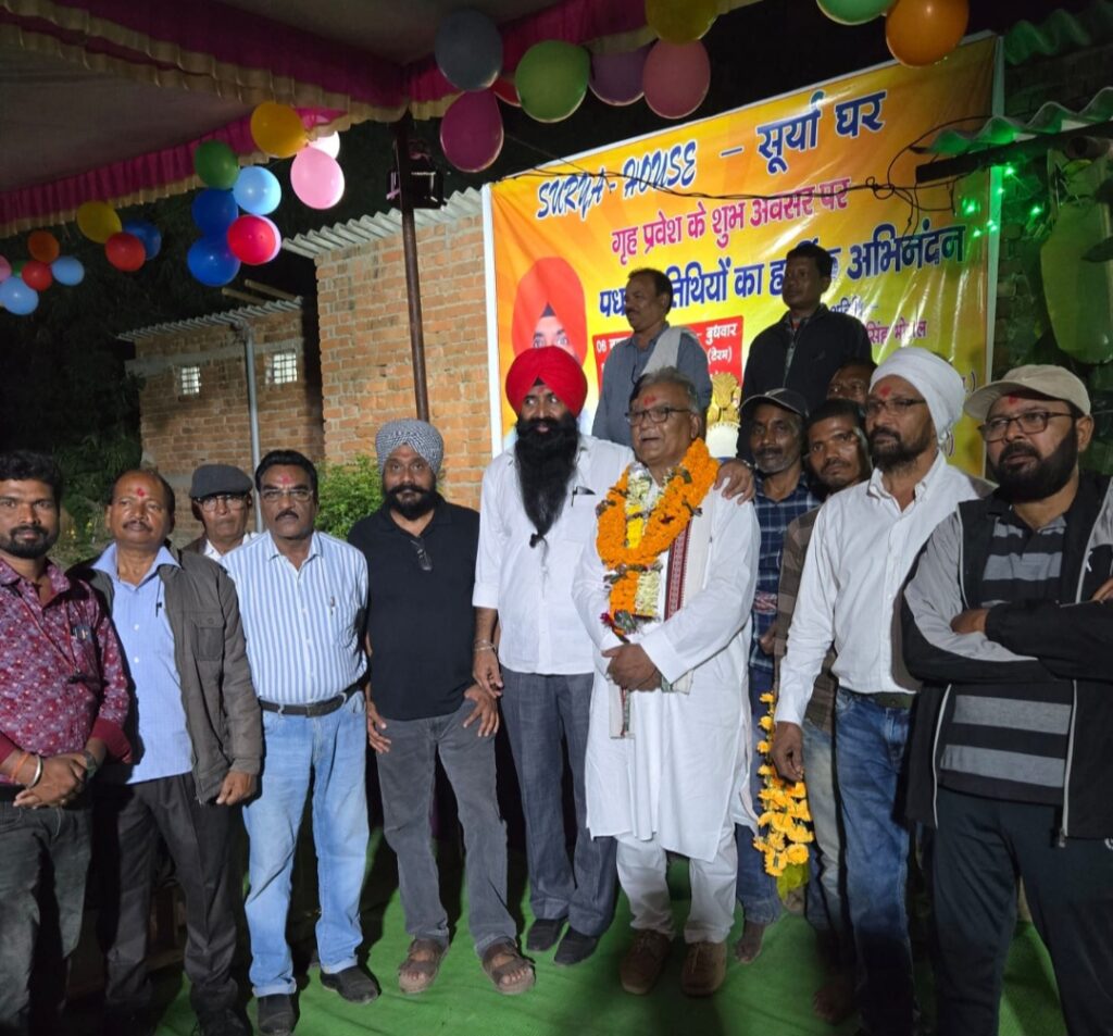 बरौद कालरी प्रसिद्ध मजदूर नेता एवं समाजसेवी गनपत चौहान ने बुधवार को ग्राम पतरापाली में अपने बाल सखा अजीत सिंह भोगल बिलासपुर के आतिथ्य में सूर्या हाउस में गृह प्रवेश किया। इस अवसर पर बड़ी संख्या में क्षेत्रीय जनप्रतिनिधि एवं ग्रामीणों ने चौहान परिवार के साथ खुशियां साझा की।एसईसीएल बरौद उपक्षेत्र में सर्विस पूरी करने के बाद लोगों में उनके प्रति आत्मीयता व विश्वास को न भुला पाने वाले छत्तीसगढ़ के प्रसिद्ध मजदूर नेता एवं अग्रणी समाजसेवी गनपत चौहान ने बरौद कालोनी से लगे ग्राम पतरापाली में अपना नया आशियाना बना लिया। यहां उनकी बड़ी बहन रहती हैं। उन्होंने बुधवार को अपने अजीज साथी अजित सिंह भोगल के हाथों फीता काटकर पूरे विधि-विधान के साथ मंत्रोच्चार के बीच गृह प्रवेश किया। इस अवसर पर छत्तीसगढ़ के लोक नृत्य कर्मा एवं आतिशबाजी से अतिथियों की अगुवानी कर पुष्पहार से उनका आत्मीय स्वागत किया गया। कार्यक्रम के मुख्य अतिथि एवं गुरु तेग बहादुर शिक्षण समिति बिलासपुर के अध्यक्ष अजीत सिंह भोगल ने कहा कि उनकी इच्छा थी कि रिटायरमेंट के बाद साथी गनपत स्थायी रूप से बिलासपुर में बसे , लेकिन इस क्षेत्र के प्रति उनका लगाव और ग्रामीणों को आगे बढ़ाने की सोच के आगे उन्हें अपना निर्णय बदलना पड़ा। गनपत चौहान अब पतरापाली में रहकर क्षेत्र की सेवा करेंगे। उन्होंने श्री चौहान को गृह प्रवेश एवं जन्मदिन की शुभकामनाएं दी और आत्मीय अभिनंदन के लिये खुले मन से उनकी सराहना की। इसके पूर्व ग्राम पंचायत फगुरम के सरपंच गुलाब सिंह राठिया एवं नारायण सिंह राठिया ने मजदूर नेता श्री चौहान के सादगीपूर्ण जीवन और स्वच्छ विचारों की प्रशंसा की,उन्होंने कहा कि मौजूदा परिवेश में वे छत्तीसगढ़ के गांधी जैसे हैं। समाज के गरीब किसान,मजदूरों के लिये आज भी उनका संघर्ष जारी है। बबलू राजपूत , लक्ष्मण श्रीवास,बुजु वर्मा,पीके नायडू बिलासपुर ने भी अपने विचार रखे और क्षेत्र के विकास के लिये श्री चौहान की सक्रियता की सराहना की। इस दौरान मजदूर नेता गनपत चौहान ने अतिथियों के प्रति आभार ज्ञापित करते हुए कहा कि श्री भोगल उनके विपरीत परिस्थितियों के साथी हैं,वे सालों से यहां आते रहे हैं,और क्षेत्र को बेहतर जानते हैं। उन्होंने बचपन के साथी अजित भोगल से जुड़े अनेक संस्मरण भी सुनाए।