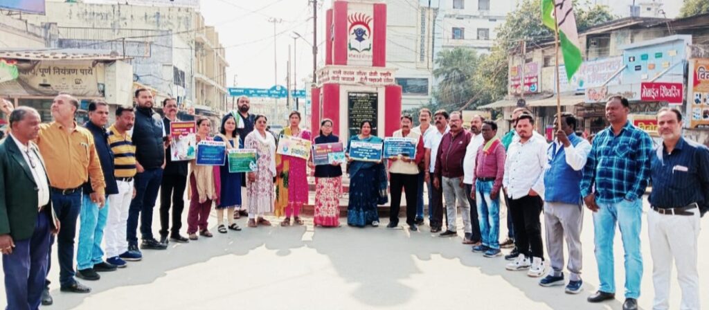 रायगढ़ जिला कांग्रेस कमेटी रायगढ के अध्यक्ष अनिल शुक्ला के नेतृत्व में 13 दिसंबर 2024 को प्रदेश भाजपा सरकार के 1 वर्ष के कार्यकाल लचर कानून व्यवस्था और जनहित के मुद्दों की अनदेखी कर पूर्ण होने पर हुई आमजनों की बदहाली को लेकर आज बैनर ब पोस्टरों के साथ बड़ी संख्या में कांग्रेस कार्यकर्तागण व प्रकोष्ठ पदाधिकारी गण कांग्रेस भवन रायगढ से पोस्टर प्रदर्शन मार्च करते हुए बेटी बचाओ बेटी पढ़ाओ रेलवे स्टेशन चौराहे पहुंचे तत्पश्चात गांधी जी की प्रतिमा पहुंचे।जहां प्रदेश बीजेपी की बिष्णुदेव सरकार के खिलाफ मौन होकर पोस्टर बैनर प्रदर्शन कार्यक्रम हुआ।पोस्टर बैनर प्रदर्शन कार्यक्रम के बारे में जिला कांग्रेस अध्यक्ष अनिल शुक्ला ने बताया कि प्रदेश में भाजपा सरकार का एक वर्ष का कार्यकाल आज पूर्ण हो रहा है। एक वर्ष के इस कार्यकाल में प्रदेश में कानून-व्यवस्था सहित विभिन्न जनहित के मुद्दों से आम जनता बदहाल हो चुकी हैं। प्रदेश कांग्रेस कमेटी के माननीय अध्यक्ष दीपक बैज जी ने राज्य भाजपा सरकार की एक वर्ष के असफल कार्यकाल में बेहाल हुयी छत्तीसगढ़ की स्थिति को आमजनता तक पहुंचाने के उद्देश्य से 13 दिसम्बर से चरणबध्द आंदोलन किये जाने का निर्णय लिया गया है, जिसके तहत आज जिला कांग्रेस कमेटी द्वारा पोस्टर बैनर प्रदर्शन का कार्यक्रम किया गया है। वही प्रदेश के समस्त जिला मुख्यालयों में आज 1 घंटे का का कार्यक्रम सरकार की बदहाली को लेकर पोस्टर प्रदर्शन किया जा रहा है, जिसके तहत शहर के मुख्य चौक-चौराहों पर कांग्रेसजन भाजपा सरकार के विभिन्न विफलताओं बलौदाबाजार अग्निकाण्ड, लोहारीडीह हत्याकाण्ड, बलरामपुर पुलिस अभिरक्षा में हुयी मौत, आदिवासी फर्जी मुठभेड, हसदेव जंगल कटाई, महिलाओं के साथ हो रही अनाचार, प्रदेश में बदहाल कानून-व्यवस्था जैसे प्रमुख मुद्दों को लेकर मौन-प्रदर्शन करने का उद्देश्य आमजनता का ध्यान बीजेपी सरकार की विफलता पर आकृष्ट कराया जाना है।अनिल शुक्ला ने आगे बताया कि इस चरणबद्ध कार्यक्रमों में 14 दिसंबर को महिला कांग्रेस, 15 दिसंबर को एन.एस.यू.आई.,16 दिसंबर को युवक कांग्रेस व 17 दिसंबर को किसान कांग्रेस के पदाधिकारी गण प्रदेश सरकार की लचर कानून व्यवस्था व आमजनों की बदहाली के 1 वर्ष पूर्ण होने पर पोस्टर बैनर प्रदर्शन करेंगे।आज इस कार्यक्रम में मुख्य रूप से पूर्व शहर कांग्रेस अध्यक्ष दीपक पांडेय,जिला कांग्रेस अध्यक्ष अनिल शुक्ला,महापौर जानकी काटजू,नारायण घोरे पूर्व एल्डरमैन, प्रभारी महामन्त्री जिला कांग्रेस शाखा यादव,नगर कांग्रेस अध्यक्ष द्वय विकास ठेठवार व मदन महन्त,रानी चौहान महिला कांग्रेस अध्यक्ष,संतोष बोहिदार,शेख ताजीम,सेवादल संगठक शकील अहमद,राजेश भारद्वाज,सूरज उपाध्याय,मि