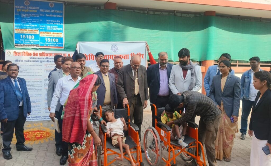 रायगढ़ जिला विधिक प्राधिकरण रायगढ़ द्वारा आयोजित जिला विधिक जागरुकता शिविर शनिवार दिनांक 14 दिसंबर 2024 को जिला विधिक सेवा प्राधिकरण एवं समाज कल्याण जिला रायगढ़ के संयुक्त तत्वावधान में जनपद पंचायत रायगढ़ के अंतर्गत ग्राम पंडरीपानी के दो दिव्यांग बच्चों को उप संचालक समाज कल्याण श्री शिवशंकर पांडेय के निर्देशानुसार उग्रसेन पटेल और नवरतन सिंह बिंझवार कर्मचारी गण के द्वारा एक -एक व्हीलचेयर सहायक उपकरण दिव्यांग बच्चों के सहायतार्थ प्रदायित किया गया ।इस अवसर पर सिविल कोर्ट जिला रायगढ़ के जिला एवं सत्र न्यायाधीश माननीय श्री जितेन्द्र कुमार जैन जी के कर कमलों द्वारा प्रदत्त किया गया। इस शिविर में जिला सेवा विधिक प्राधिकरण जिला रायगढ़ के अधिकारी व कर्मचारी तथा अन्य न्यायालयीन अधिकारी-कर्मचारी एवं आम नागरिकों की उपस्थिति रही।