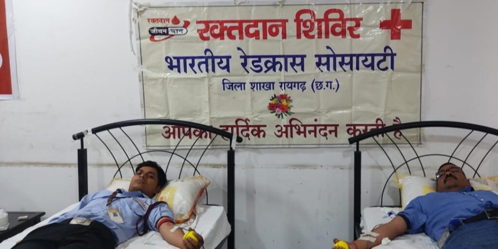 रायगढ़ कलेक्टर एवं अध्यक्ष भारतीय रेडक्रॉस सोसायटी जिला शाखा रायगढ़ के निर्देशन एवं सीएमएचओ डॉ.अनिल कुमार जगत,श्री मुकेश शर्मा,चेयरमेन, डॉ.एच.एस.उरांव, प्रभारी अधिकारी,श्री संतोष अग्रवाल,राज्य प्रबंध समिति सदस्य के मार्गदर्शन में 24 जून को अदानी कोल माइन्स गारे पेलमा सर्विस बिल्ंिडग मिलूपारा तमनार, अम्बूजा सीमेन्ट लिमिटेड गारे पेलमा कोल माइन्स के बैचलर हॉस्टल खम्हरिया तमनार में तथा अदानी पावर लिमिटेड, छोटे भण्डार एवं अदानी प्रोजेक्ट लिमिटेड छोटे भण्डार,तहसील पुसौर में रक्तदान शिविर का आयोजन किया गया। जहां कंपनियों में कार्यरत 430 लोगों रक्तदान किया।इस दौरान अम्बूजा सीमेन्ट लिमिटेड में 50 यूनिट,अदानी कोल माइन्स गारे पेलमा में 140 यूनिट, अदानी पावर लिमिटेड में 77 यूनिट,अदानी प्रोजेक्ट लिमिटेड में 163 यूनिट यूनिट रक्तदान किया गया। भारतीय रेडक्रॉस सोसाइटी द्वारा आयोजित रक्तदान शिविर में 430 यूनिट रक्त एकत्र किया गया। यह एक महत्वपूर्ण उपलब्धि है जो रक्तदाताओं के उत्साह और सहयोग को दर्शाती है। इस शिविर का उद्देश्य रक्त दान के महत्व के बारे में जागरूकता बढ़ाना और जरूरतमंदों की मदद करना था शिविर को सफल बनाने में भारतीय रेडक्रॉस सोसायटी के कर्मचारियों, किरोड़ीमल जिला चिकित्सालय के चिकित्सकीय दल एवं संत बाबा गुरू घासीदास जी स्मृति चिकित्सालय रायगढ़ के चिकित्सकीय दल का विशेष योगदान रहा।
