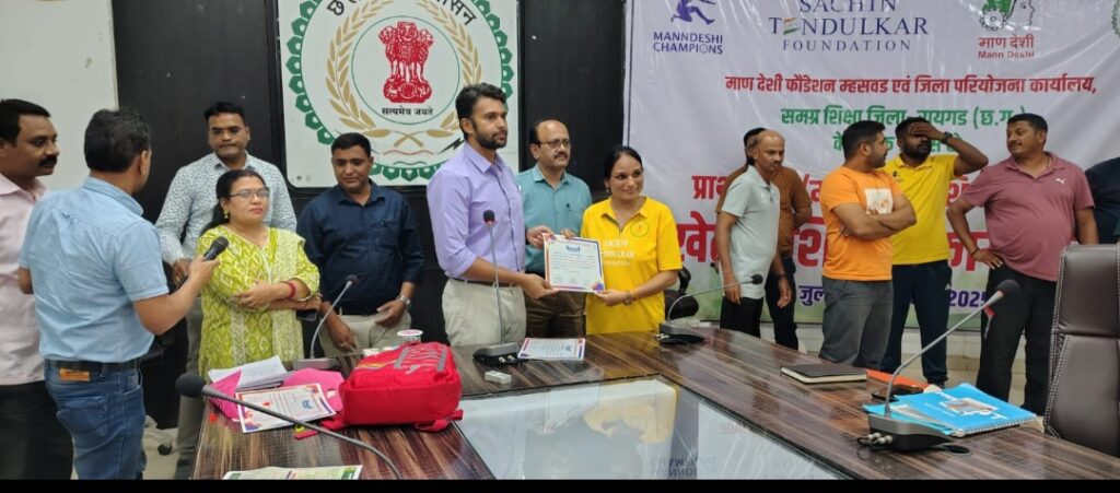 रायगढ़ कलेक्टर श्री मयंक चतुर्वेदी के निर्देशन एवं सीईओ जिला पंचायत श्री जितेन्द्र यादव के मार्गदर्शन में सचिन तेंदुलकर फाउंडेशन के तत्वावधान में माण देसी ट्रैवल चैंपियन द्वारा संचालित पांच दिवसीय आवासीय प्रशिक्षण कार्यक्रम आयोजित किया गया। इस विशेष प्रशिक्षण में जिले के सातों विकासखंडों के प्राथमिक एवं माध्यमिक शालाओं से चयनित कुल 115 शिक्षक प्रतिभागियों ने भाग लिया, प्रशिक्षण का उद्देश्य शिक्षकों के माध्यम से बच्चों के सर्वांगीण विकास की दिशा में प्रभावी हस्तक्षेप करना रहा। प्रतिदिन प्रशिक्षण के सैद्धांतिक सत्र रायगढ़ के सृजन सभा कक्ष में आयोजित हुए, जबकि प्रायोगिक सत्र रायगढ़ स्टेडियम बोइरदादर में संपन्न हुए। जहां शिक्षकों को स्वयं खेल मैदान तैयार करने,खेल तकनीक, व्यायाम,नींद,पोषण और मांसपेशियों की मजबूती से संबंधित गहन जानकारी दी गई। कार्यक्रम की रूपरेखा जिला शिक्षा अधिकारी डॉ.के.वी.राव, डीएमसी श्री नरेंद्र चौधरी तथा कार्यक्रम के जिला नोडल अधिकारी एवं एपीसी भुवनेश्वर पटेल के नेतृत्व में तैयार की गई।पांच दिवसीय प्रशिक्षण के मुख्य उद्देश्य जिसमें