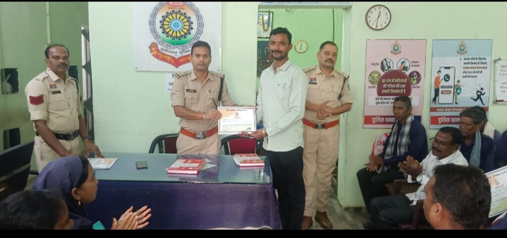रायगढ़ पुलिस अधीक्षक श्री दिव्यांग कुमार पटेल के दिशा-निर्देशन में रायगढ़ जिले के सभी थानों में प्रत्येक माह ग्राम कोटवारों की बैठक तथा थाना क्षेत्र में उत्कृष्ट और समाजहित में प्रेरणादायक कार्य करने वाले नागरिकों, शिक्षकों,छात्रों एवं स्वास्थ्य कर्मियों के सम्मान का आयोजन किया जा रहा है। इस कड़ी में थाना जूटमिल, खरसिया और भूपदेवपुर में कोटवारों की बैठकें ली गईं और प्रेरणास्पद योगदान देने वालों को सम्मानित किया गया।थाना जूटमिल*में आयोजित कार्यक्रम के पहले चरण में थाना प्रभारी निरीक्षक प्रशांत राव ने ग्राम कोटवारों की बैठक लेकर उन्हें निर्देशित किया कि वे अपने ग्राम के बीट पुलिस अधिकारियों से सतत संपर्क में रहें और किसी भी घटना-दुर्घटना की तत्काल जानकारी पुलिस को दें। साथ ही कोटवारों को नियमित रूप से थाना आने के लिए भी निर्देशित किया गया कार्यक्रम के दूसरे चरण में समाजहित में योगदान देने वाले व्यक्तियों का सम्मान किया गया। इनमें प्राथमिक शाला संगीतराई के प्रधानपाठक श्री राम प्रसाद बेहरा, उच्चतर माध्यमिक विद्यालय तरकेला की भौतिक शास्त्र व्याख्याता नीलम तिवारी,उपस्वास्थ्य केन्द्र ननसिया की सामुदायिक स्वास्थ्य अधिकारी जेनिफर जोसेफ,उपस्वास्थ्य केन्द्र तरकेला के ग्रामीण स्वास्थ्य संयोजक उमेश कुमार पटेल शामिल रहे।शिक्षा क्षेत्र में उल्लेखनीय प्रदर्शन करने वाली शासकीय उच्चतर माध्यमिक विद्यालय झलमला की छात्रा स्वीटी गुप्ता (कक्षा 8वीं – 86%) एवं आत्मानंद स्कूल कोड़ातराई के छात्र रितेश पटेल (कक्षा 10वीं – 85%) को भी प्रशस्ति पत्र व प्रतीक चिन्ह देकर सम्मानित किया गया।साथ ही ग्राम भाठनपाली के गणमान्य नागरिक एवं पुलिस मित्र प्रसिद्ध प्रधान और झसकेतन डेहरी, ग्राम डूमरपाली के कोटवार महेश्वर दास महंत और ग्राम मिडमिडा के कोटवार संजय चौहान को भी सम्मानित किया गया।इसी प्रकार *थाना खरसिया*में थाना प्रभारी निरीक्षक राजेश जांगड़े द्वारा ग्राम कोटवारों की मीटिंग लेकर क्षेत्र के स्वास्थ्य कर्मियों,ग्राम कोटवारों और गणमान्य नागरिकों को प्रशस्ति पत्र देकर उनका उत्साहवर्धन किया गया *थाना भूपदेवपुर में उप निरीक्षक संजय नाग ने ग्राम कोटवारों की बैठक लेकर ग्रामों की गतिविधियों की जानकारी ली और उन्हें आवश्यक निर्देश प्रदान किए। इस पहल से पुलिस और आमजन के बीच संवाद और सहभागिता का मजबूत सेतु तैयार हो रहा है,जिससे न केवल क्षेत्रीय सूचना तंत्र को मजबूती मिल रही है,बल्कि समाज के प्रेरणादायक कार्यों को भी सराहना और पहचान मिल रही है। पुलिस अधीक्षक श्री दिव्यांग कुमार पटेल की यह सामुदायिक पुलिसिंग पहल जिले में कानून व्यवस्था के साथ सामाजिक विश्वास की भावना को भी सशक्त
