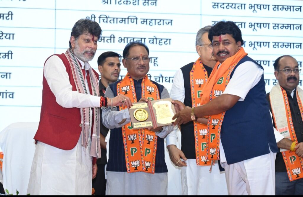 खरसिया छत्तीसगढ़ के *यशस्वी मुख्यमंत्री श्री विष्णु देव साय जी प्रदेश भारतीय जनता पार्टी अध्यक्ष श्री किरण सिंह देव,केंद्रीय मंत्री श्री तोखन साहू,पूर्व मुख्यमंत्री,विधानसभा अध्यक्ष डॉ रमन सिंह,उप मुख्यमंत्री द्वय श्री अरुण साव,श्री विजय शर्मा,राष्ट्रीय उपाध्यक्ष सु श्री सरोज पांडे,क्षेत्रीय संगठन महामंत्री श्री अजय जामवाल,प्रदेश संगठन महामंत्री श्री पवन साय,सदस्यता प्रभारी श्री अनुराग सिंह देव,कार्यालय मॉनिटरिंग श्री कमल गर्ग*एवं अन्य वरिष्ठ नेताओं,संगठन के पदाधिकारियों के कर कमलों से भाजपा जिलामंत्री रायगढ़, पूर्व कार्यकारी प्रदेशाध्यक्ष प्रदेश साहू संघ छत्तीसगढ़, छाया विधायक खरसिया महेश साहू जी को प्रदेश भारतीय जनता पार्टी ने उत्कृष्ट सदस्यता रत्न सम्मान से सम्मानित करते हुए प्रशस्ति पत्र एवं मोमेंटो प्रदान करते हुए भारतीय जनता पार्टी के *प्राथमिक सदस्यता महाभियान में आपने संख्या 15,127 लक्ष्य पूर्ण कर उत्कृष्टकार्य किया है, इस हेतु भारतीय जनता पार्टी द्वारा यह सम्मान आपको प्रदान करते हुए आपके उज्ज्वल भविष्य की मंगल कामना करते हैं। बताते चले कीमहेश साहू ने सदस्यता अभियान में प्रदेश के टॉप टेन में जगह बनाते हुए सातवां स्थानप्राप्त किया है जो की खरसिया व रायगढ़ जिला क्षेत्र के लिए एक गौरव का विषय है। रायगढ़ जिले में जन सेवक और छाया विधायक के नाम से प्रसिद्ध महेश साहू खरसियाविधानसभा चुनाव हारने के बावजूद भी लगातार विधानसभा क्षेत्र में सकारात्मक सोच के साथ सक्रिय है और आमजन के कार्यों को करवाने तथा गरीब पिछड़ों की मदद के लिए हमेशा तत्पर रहते हैं छत्तीसगढ़ सरकार की विभिन्न योजनाओं को पात्र हितग्राहियों तक पहुंचाने और इसका लाभ क्षेत्र की जनता को दिलवाने के लिए लगातार प्रयासरत रहते हैं। इनके पास अपना कार्य लेकर पहुंचने वाला क्षेत्र का कोई भी आम नागरिक कभी खाली वापस नहीं संतुष्ट होकर आता है महेश साहू हर हाल में उसकी मदद करते हैं और उसके कार्य को करने का यथा हर संभव प्रयास करते हैं।