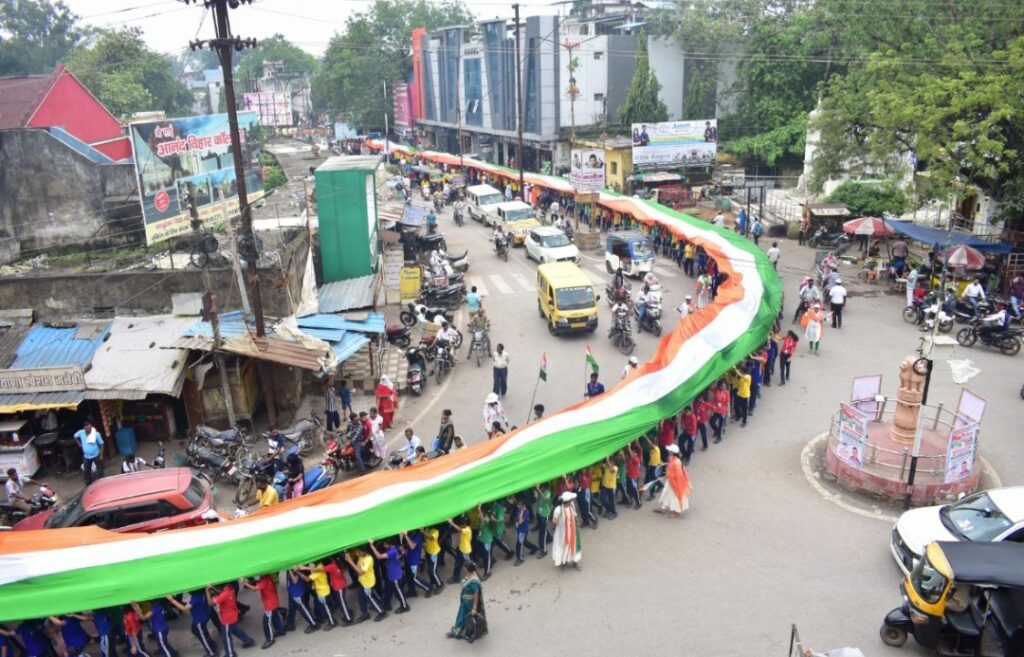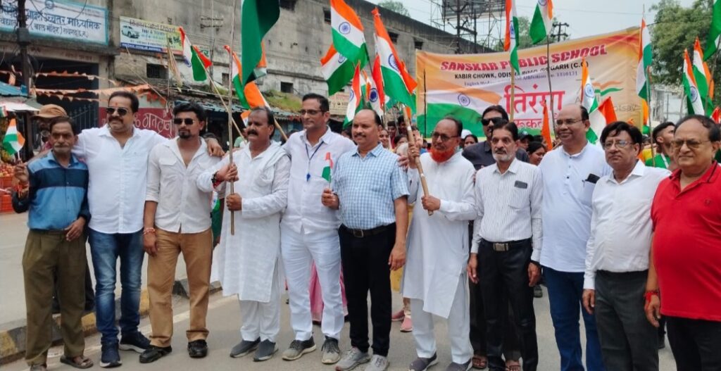 रायगढ़ 15 अगस्त स्वतंत्रता दिवस से पहले रायगढ़ शहर पूरी तरह देशभक्ति के भाव में सराबोर हो गया। यह अवसर था संस्कार पब्लिक स्कूल , विप्र फाउंडेशन और नव निर्माण संकल्प समिति के संयुक्त तत्वाधान में निकाले गए तिरंगा यात्रा का। मंगलवार को सुबह 10: बजे नटवर स्कूल से, रायगढ़ के प्रसिद्ध शिक्षाविद समाजसेवी रामचंद्र शर्मा के नेतृत्व में ऐतिहासिक तिरंगा यात्रा निकाली गई। तिरंगा यात्रा को रायगढ़ के कलेक्टर मयंक चतुर्वेदी ने झंडा दिखाकर रवाना किया। इस अवसर पर रायगढ़ कलेक्टर ने तिरंगा यात्रा की सराहना करते हुए लोगों को देश प्रेम और तिरंगा के प्रति जागरूक होने की अपील की है। मंगलवार को तिरंगा यात्रा के दौरान पूरा रायगढ़ तिरंगे के रंग में रंग गया। रायगढ़ में आयोजित होने वाले यह तिरंगा यात्रा अपने आप में ही ऐतिहासिक है क्योंकि रायगढ़ ही नहीं पूरे छत्तीसगढ़ में इस तरह दूसरी तिरंगा यात्रा शायद ही निकलती हो जिसमें हजारों लोग एक साथ तिरंगा उठाकर चलते हैं। देश के जवान और वीर शहीदों के सम्मान में निकाले गए 150 मीटर लम्बे तिरंगे को कार्यक्रम संयोजक रामचंद्र शर्मा के साथ लगभग ढाई हजार लोगों ने शहर के गलियों में लहराया। इस अवसर पर शहर के लोगों ने हिंदू ,मुस्लिम, सिख ,इसाई सर्वधर्म समान और एकता का संदेश दिया। सभी समुदाय के लोगों ने लगभग 3 घंटे तिरंगा उठाकर पदयात्रा की है। यात्रा के दौरान प्रमुख रूप से संस्कार पब्लिक स्कूल के प्रिंसिपल श्रीमती रश्मि शर्मा, नवनिर्माण संकल्प समिति के कोषाध्यक्ष सी पी देवांगन,सचिव दीपक मंडल सहित सभी समाज के गणमान्य नागरिक और रायगढ़ नगर निगम के नेता प्रतिपक्ष सलीम नियारिया,वरिष्ठ पत्रकार सुभाष त्रिपाठी,श्रीमती आशा त्रिपाठी, विनय पांडेय ,रमेश अग्रवाल बजरंग अग्रवाल,पूर्व पार्षद संजय देवांगन,वरिष्ठ नेता शाखा यादव, विनय दुबे,भाजपा नेता सचिन चौहान कोच चंद्रेश यादव, उद्योगपति विनोद महमिया, विजय पंडा घरघोड़ा, कर्मचारी फैडरेशन के कलीमुल्लाह सिद्दीकी, किसान नेता लल्लू सिंह ,कामता पटेल, सोनू पुरोहित,अनिल प्रधान, मनोज देवांगन नारायण घोरे अरविन्द साहू, विप्र फाउंडेशन के राजेश शर्मा विक्की शर्मा, सुरेंद्र शर्मा,सुनील मस्ता,शिक्षाविद संतोष ठाकुर जयबीर शर्मा,प्रोफ़ेसर रंजीत बारीक,पुसौर नगर पंचायत अध्यक्ष प्रतिनिधि मोहित सतपथी, सहित अन्य नामचीन लोग शामिल थे जिसमे पत्रकार, व्यापारी , राजनेता, समाजसेवी आदि शामिल थे।व्यापारियों और सामाजिक संगठन ने लगाई स्टॉल*रायगढ़ शहर को दानदाताओं का शहर यूं ही नहीं कहा जाता। तिरंगा यात्रा के दौरान शहर के गाड़ी चौक सुभाष चौक स्टेशन चौक तथा नेटवर्क स्कूल में रैली में शामिल हुए छात्र और नागरिकों के लिए अलग-अलग स्टॉल लगाकर चॉकलेट आइसक