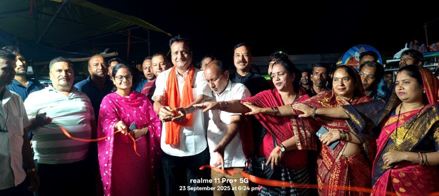 खरसिया नगर में नवरात्रि और दशहरा पर्व पर लगने वाला मेला का आज नगर पालिका अध्यक्ष कमल गर्ग और मुख्य नगर पालिका अधिकारी नीतू अग्रवाल और पार्षदों जनप्रतिनिधियों के द्वारा न्यू डिज्नी लैंड मेला का फीता काटकर शूभ आरंभ किया गया।खरसिया का दशहरा मेला पूरे अंचल में प्रसिद्ध है जिसका आनद लेने लोग दूर-दूर से खरसिया आते है। इस बार बहूत ही आकर्षक झूले और दुकाने लगी है जिसमे लोगों का उत्साह देखने लायक है। मेला प्रमुख अभिषेख भारती और उसकी टीम ने सभी अतिथियों का स्वागत सत्कार किया आज हुए मेले के शूभ आरंभ में प्रमुख रूप से नपा अध्यक्ष कमल गर्ग सीएमओ नीतू अग्रवाल, उपाध्यक्ष बंटी सोनी,पार्षद अरुण चैधरी विनोद सिदार, पतालु चैहान,राधे राठौर,रवि सहिस,मुरली राठौर,गायत्री केशरवानी,चीनू शर्मा,रेखा कैथलिया,कुमारी छोटू महंत, सतीश अग्रवाल, दशहरा समिति के अध्यक्ष रूपेश सराफ,संजय कबुलपुरिया,पत्रकारों में प्रमुख रूप से संटी सोनी, कैलाश गर्ग, प्रहलाद बंसल, सौरभ बीड़ी,नैना वैष्णव,राहुल बीड़ी,टंकेश्वर राठौर,विद्या चैहान,संजय गुप्ता, राकेश गायत्री आदि लोगों की मौजूदगी में उक्त कार्यक्रम आयोजित किया गया।