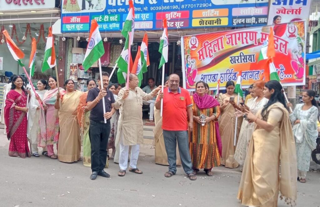 खरसिया-राष्ट्रवादी देशभक्त संगठन आर एस एस के 100 वर्ष पूर्ण होने पर राष्ट्रीय स्वयंसेवको के खरसिया नगर पथ संचालन के दौरान सुभाष चौक में महिला जागरण मंडल खरसिया द्वारा राष्ट्रीय ध्वज के साथ पूरे पथ संचालन में पुष्प वर्षा करते हुए भव्य स्वागत किया गया तथा भारत माता की जय के गगनभेदी नारे लगाएं गए। उपरोक्त कार्यक्रम में बड़ी संख्या में महिलाएं उपस्थित रही।*