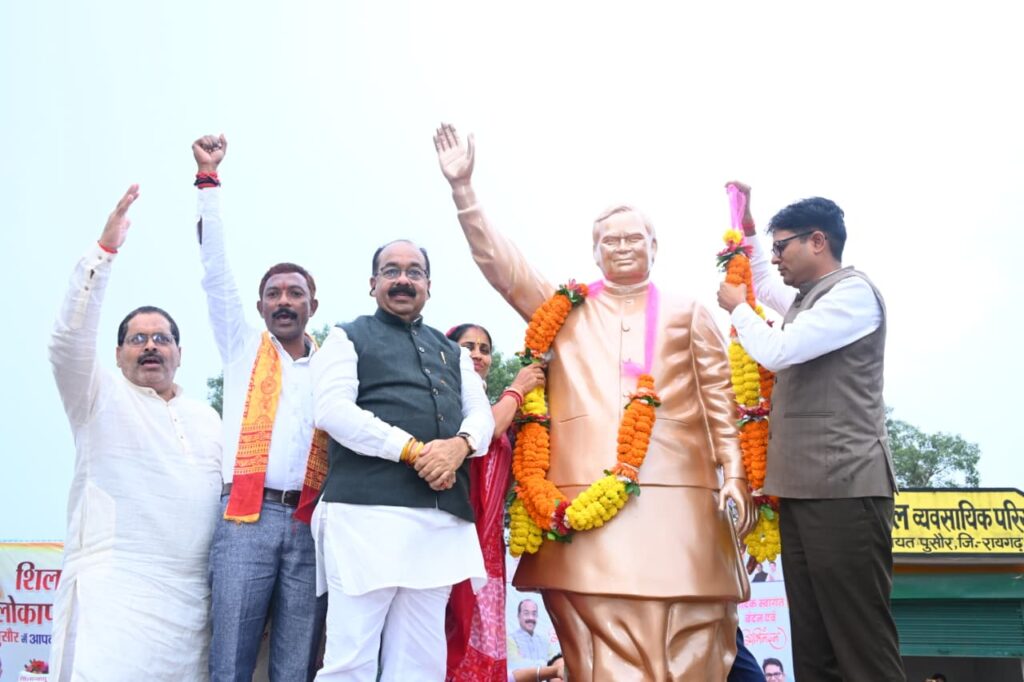 रायगढ़, नगर पंचायत पुसौर में आज विकास के प्रति नागरिकों का उत्साह देखते ही बन रहा था। यह अवसर था 15 करोड़ 31 लाख रुपये की लागत के विभिन्न विकास कार्यों के लोकार्पण एवं शिलान्यास का। इस अवसर पर उप मुख्यमंत्री श्री अरुण साव एवं वित्त मंत्री श्री ओ.पी. चौधरी मुख्य अतिथि के रूप में उपस्थित रहे। उन्होंने नगर पंचायत पुसौर के बाजार चौक में 19.78 लाख रुपये की लागत से अटल परिसर निर्माण व भारत रत्न एवं पूर्व प्रधानमंत्री स्वर्गीय श्री अटल बिहारी वाजपेयी की आदमकद प्रतिमा का अनावरण किया तथा राष्ट्र निर्माण में उनके अमूल्य योगदान को नमन किया।उप मुख्यमंत्री ने नगर के सर्वांगीण विकास हेतु अतिरिक्त 2 करोड़ रुपये देने की घोषणा की